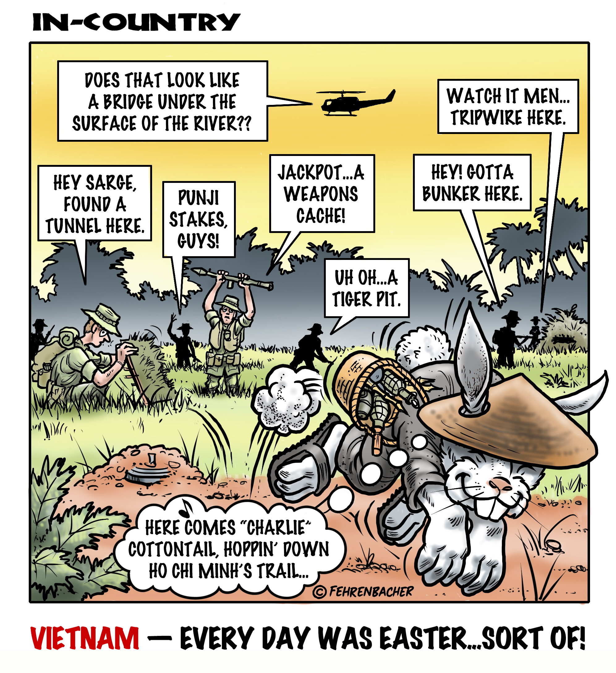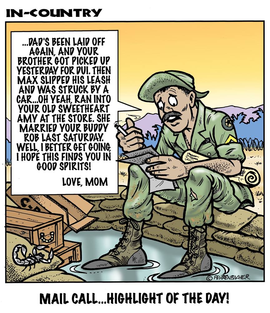 Phil enlisted in the Army in 1965 where he served for years in Vietnam.  He became a graphic designer and has worked for the state of Oregon for 26 years.  He retired in 2003 and started the Cartoon "In-Country".  The cartoons reflect his experiences during his tour of duty in South Vietnam.