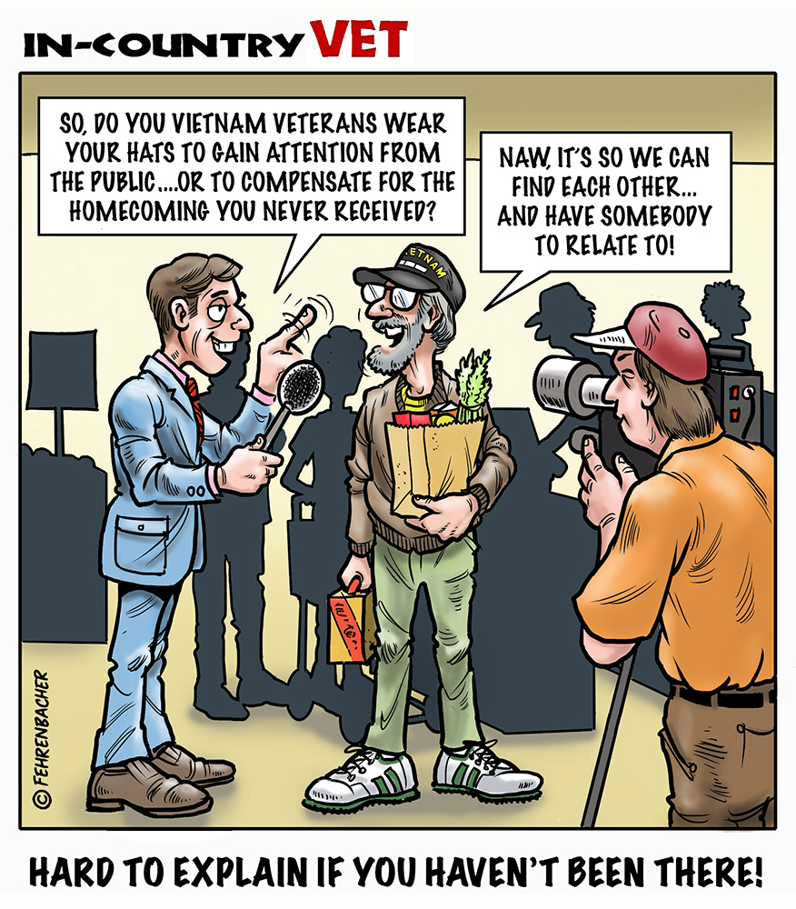 Phil enlisted in the Army in 1965 where he served for years in Vietnam.  He became a graphic designer and has worked for the state of Oregon for 26 years.  He retired in 2003 and started the Cartoon "In-Country".  The cartoons reflect his experiences during his tour of duty in South Vietnam.